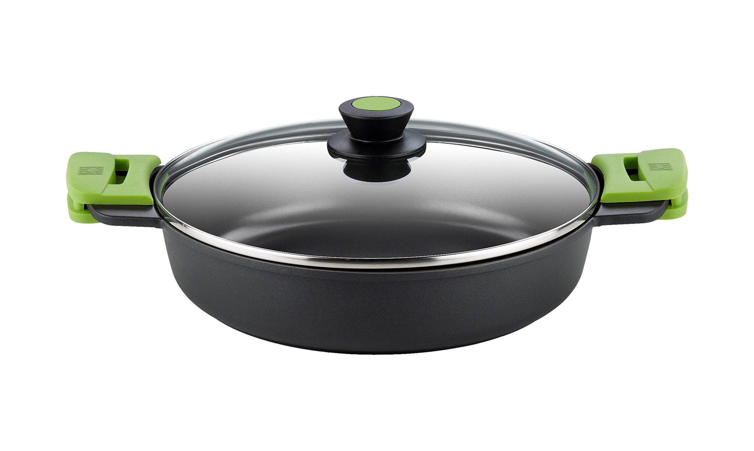 Cacerola com Tampa de Vidro e Alças de Silicone, Alumínio Fundido – 32 cm (Preto)