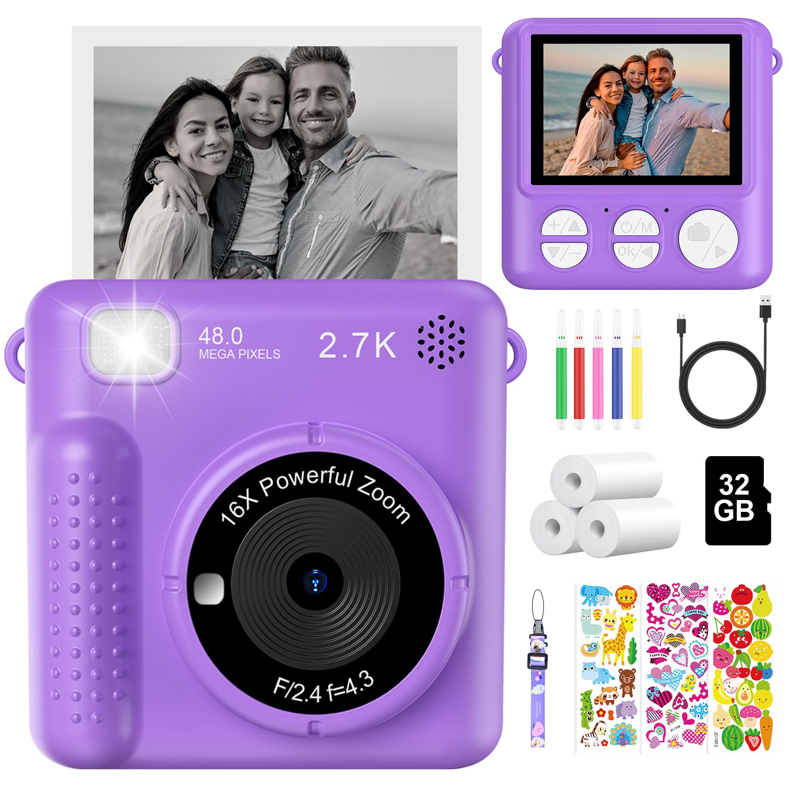Câmera Infantil Instantânea HD com Card de 32GB – Presente para Crianças de 3 a 12 anos