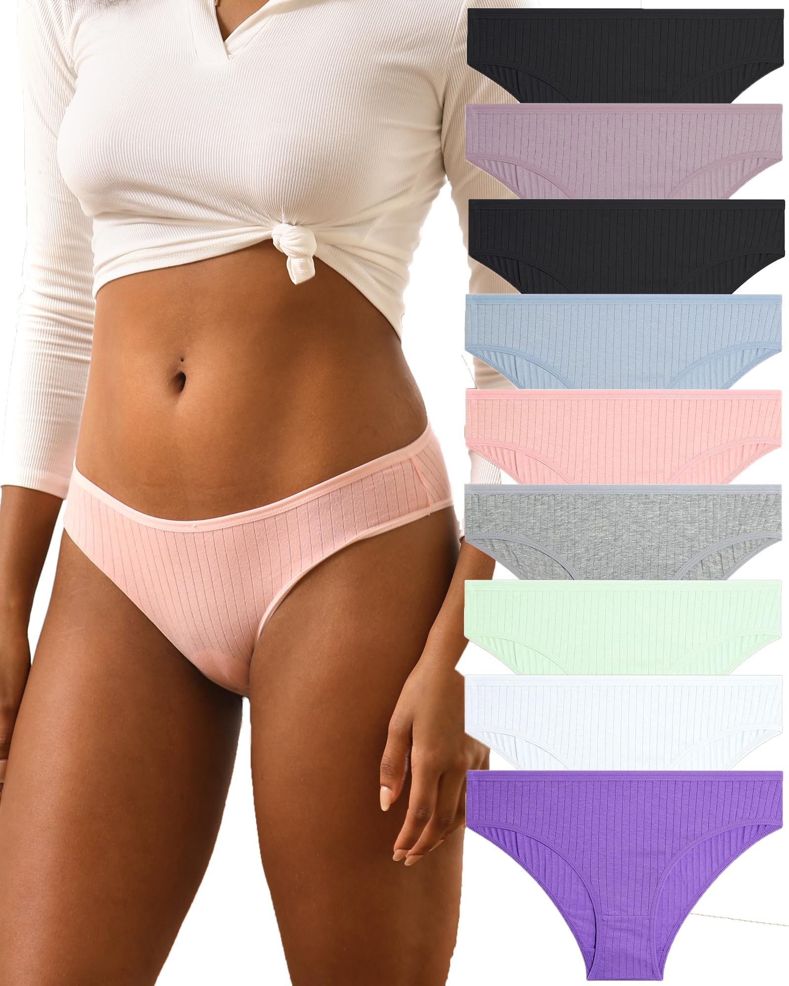 Conjunto 9 Calcinhas de Algodão Femininas, Hipster, Tamanhos S-XL