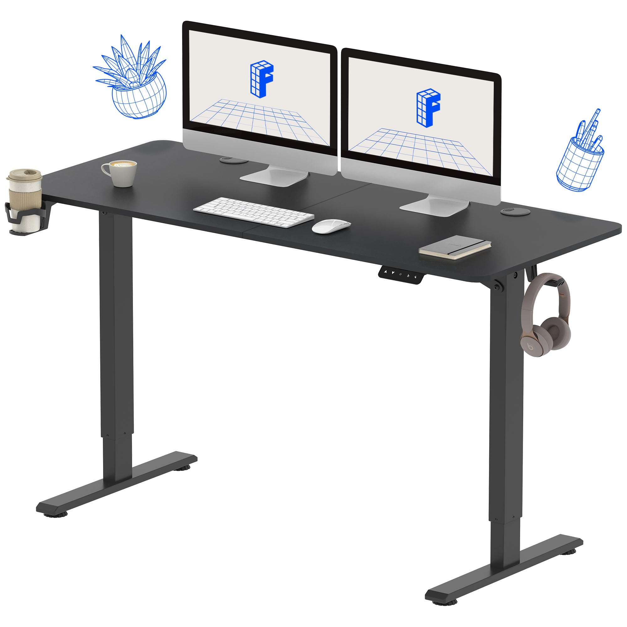 Mesa ajustável em altura 140 x 60 cm – com controle manual – ideal para escritório e home office